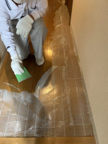 床は白を基調としたフロアタイルにはりかえていきます。
